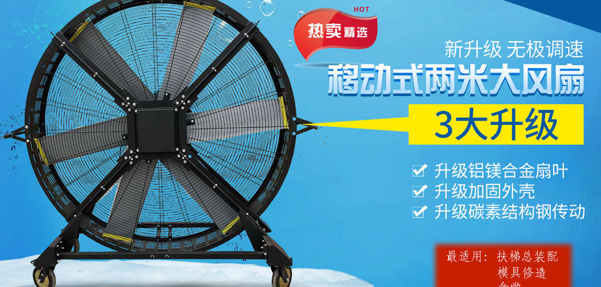 可移動(dòng)大風(fēng)扇直徑可達(dá)2.4米(8ft),
